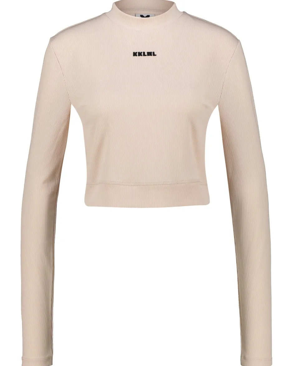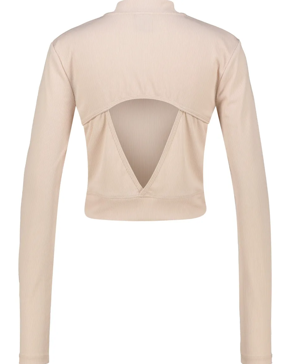 – Geripptes Langarmshirt mit Rückenausschnitt