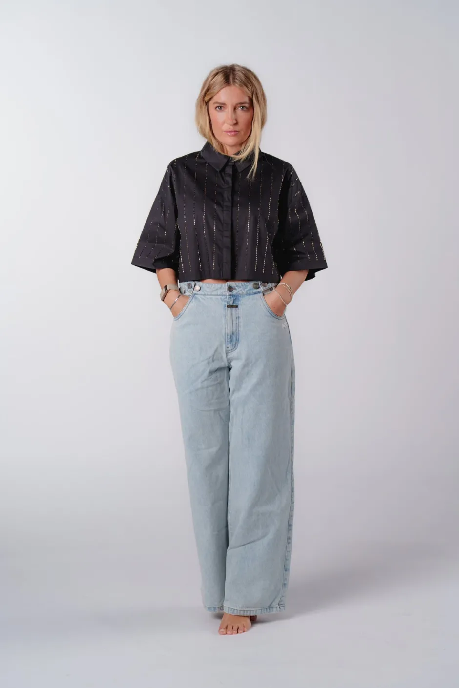 Karo ist 1,70m groß und trägt Größe S.